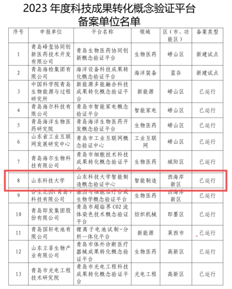 近日,青岛市科学技术局公布了青岛市首批科技wedvictor伟德,伟德官网转化概念验证平台建设备案名单,共有13家平台获批备案。山东科技大学申报的“山东科技大学智能制造概念验证中心”成功入选。