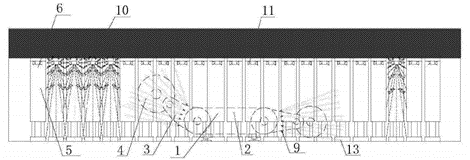 (2)本发明的综采工作面抑尘与除尘装置,其相对于现有技术,具有结构简单、设备投资省,操作灵活简便,防尘与除尘效果好等有益效果,具有良好的市场应用前景和推广价值。