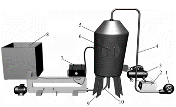 目前,广泛采用的除尘装置主要包括机械除尘装置、过滤式除尘装置、湿式除尘装置和电除尘装置四类。但上述除尘设备均具备同样的不足,主要表现在:安全性较低,高浓度含尘风流未经降尘处理进入除尘装置内部,当粉尘浓度达到一定程度后极易引起粉尘爆炸;处理风量小,除尘装置无法实现对作业区域粉尘的高效率抽吸作业;环保性不足,由于除尘装置处理风量有限,为提高抽尘效率,务必选用大功率机械设备,此时不仅耗电量大且设备运行噪音强,影响井下劳动工人间信息传递的准确性,易发生责任事故。为了提高矿井产尘场所的降尘效率,本发明提供一种矿用气雾联动的环形射流除尘系统,使含尘气体流动过程中受到高压喷雾及惯性捕尘双重降尘作用,提高降尘效率。